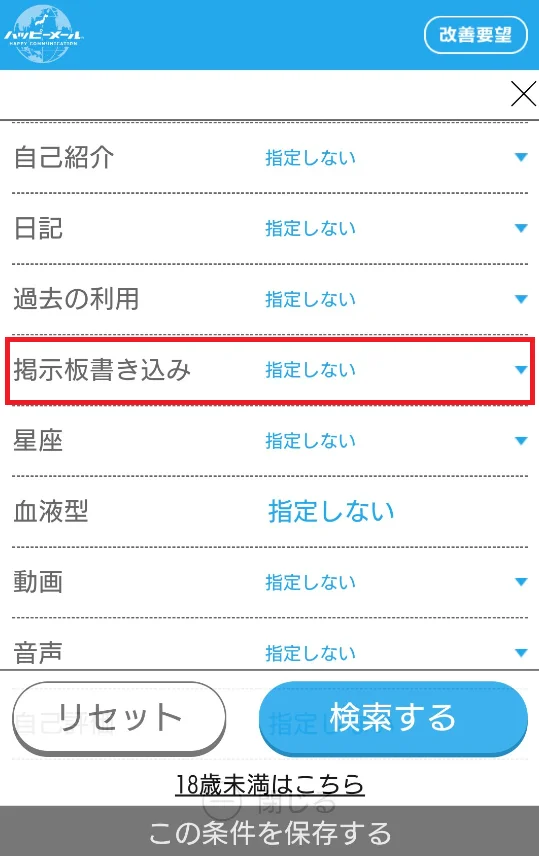 ②『プロフ検索』から掲示板に書き込みがあるかを検索