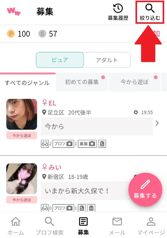 ②募集掲示板の絞り込み検索機能を使う